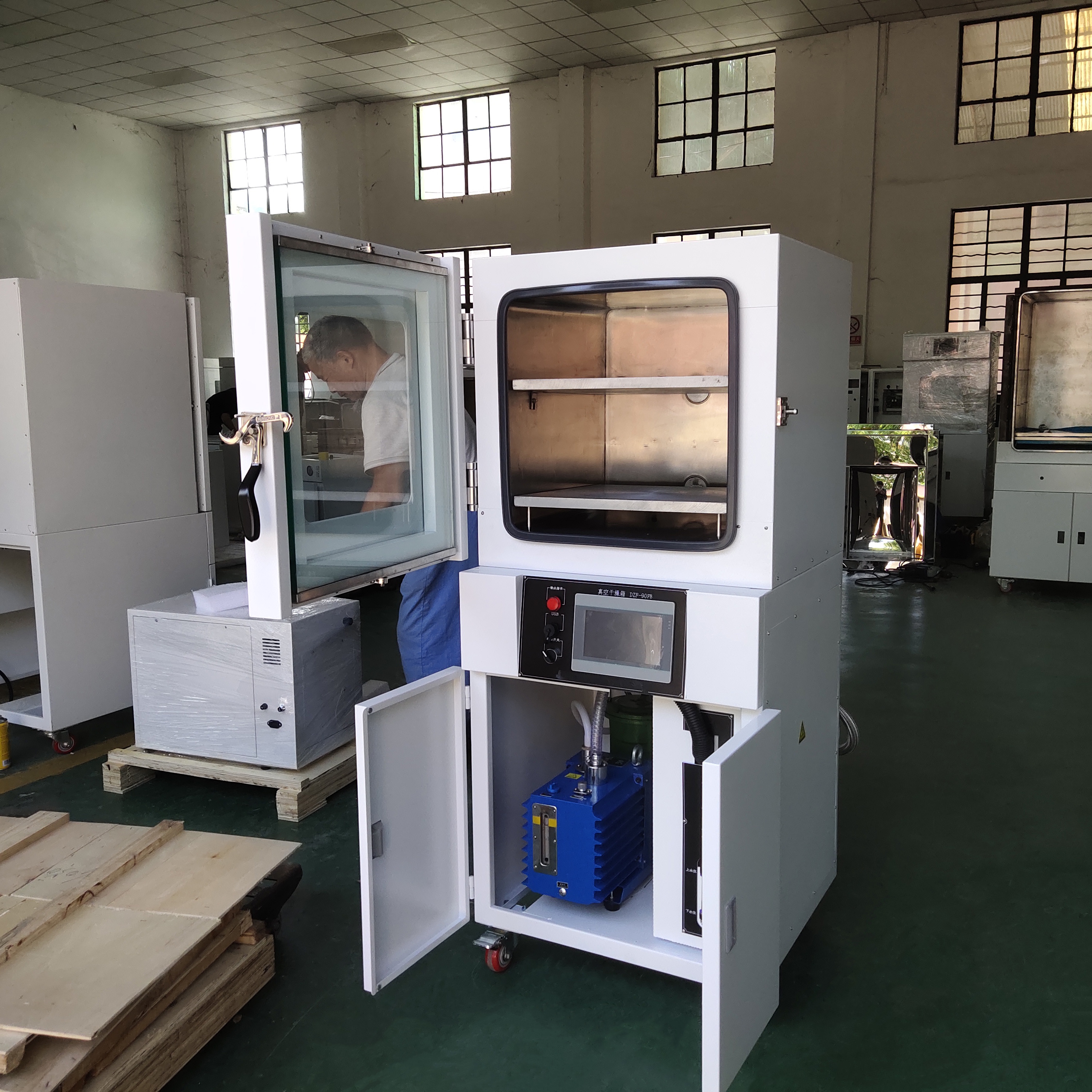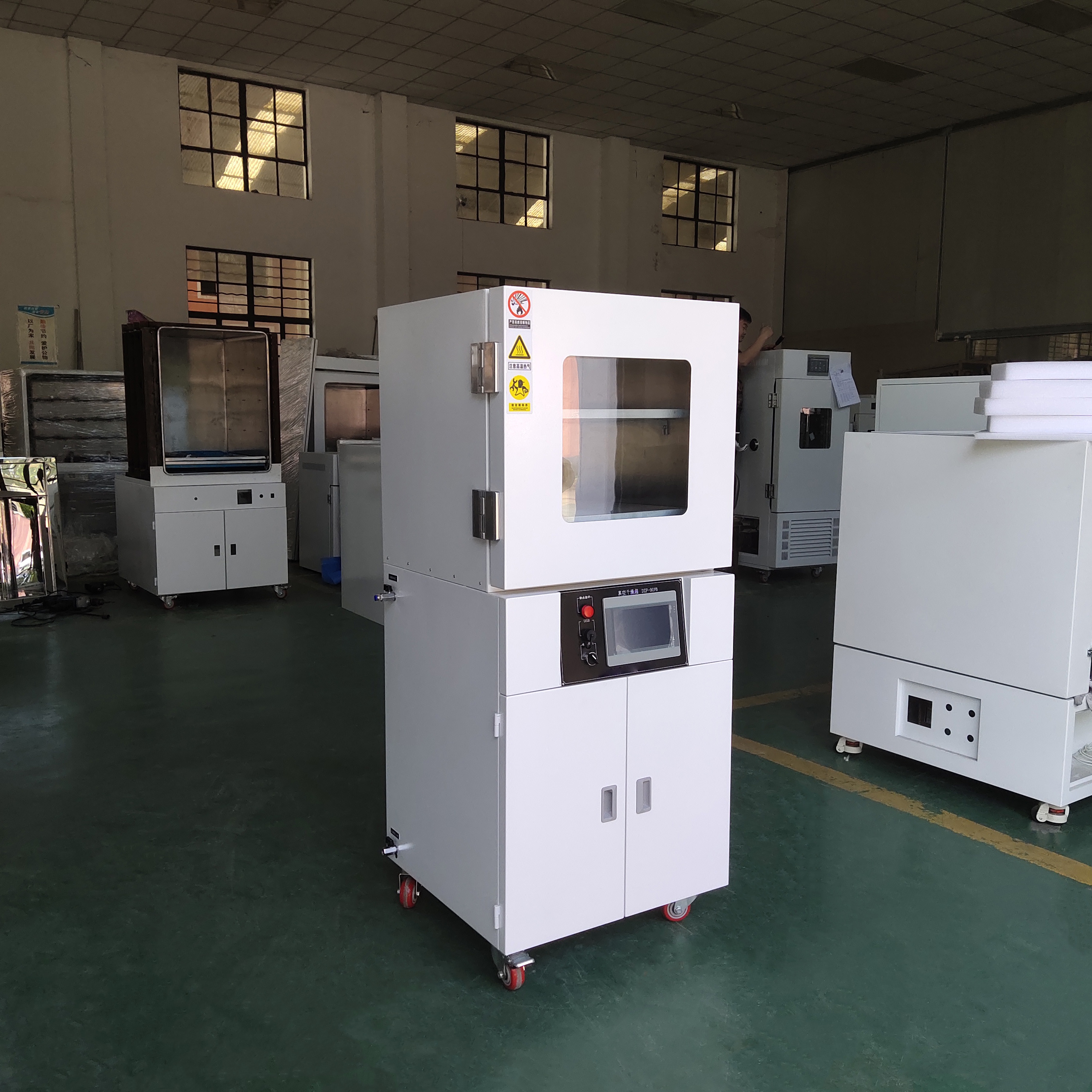 立式結(jié)構(gòu),上部腔體,防爆箱儀表在中部,真空泵在下部,底部腳輪