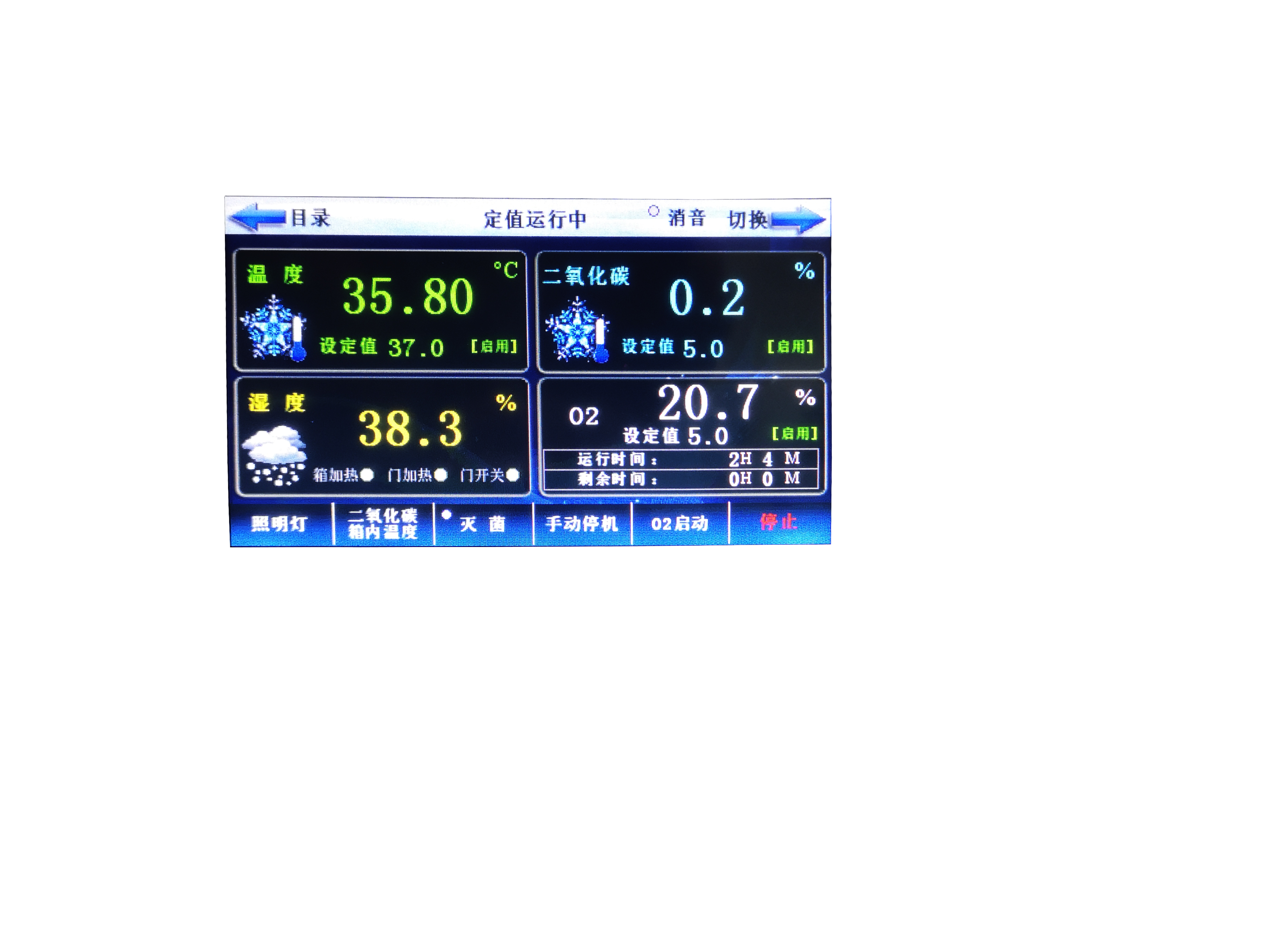 控制器 | 新一代大屏真彩色觸摸屏電腦控制器,溫度、O2濃度、CO2濃度、濕度同時(shí)顯示 |