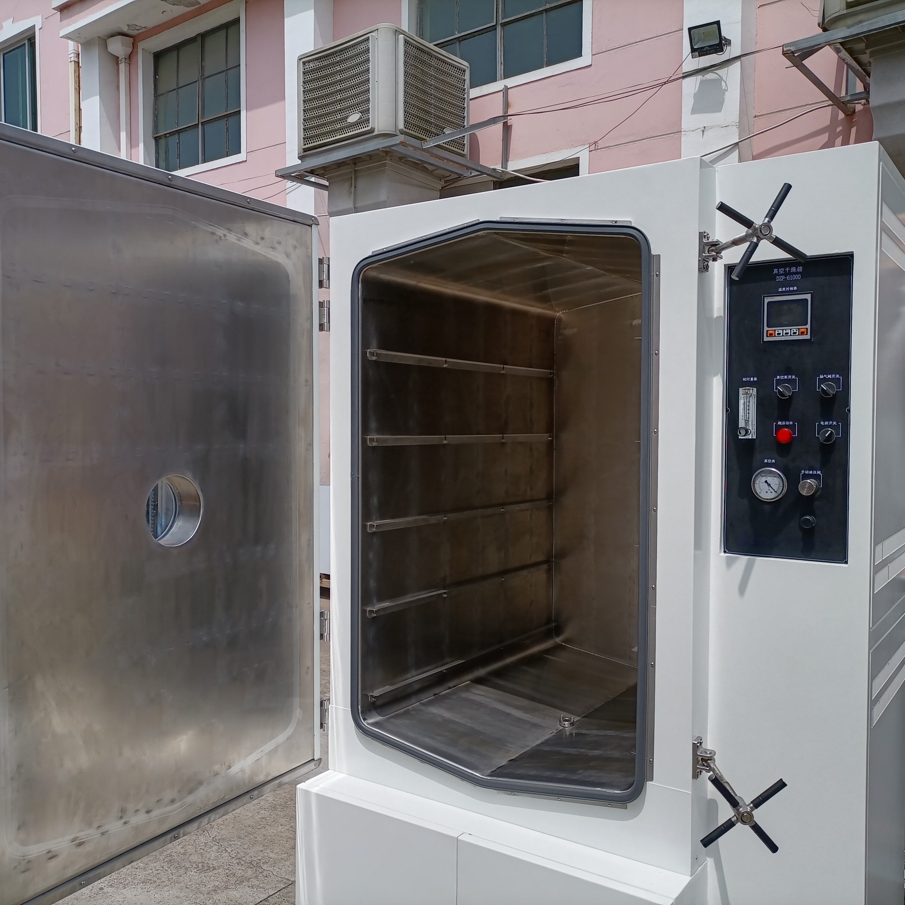 立式結構,腔體在左,儀表在右側,底部與側面為真空系統(tǒng)